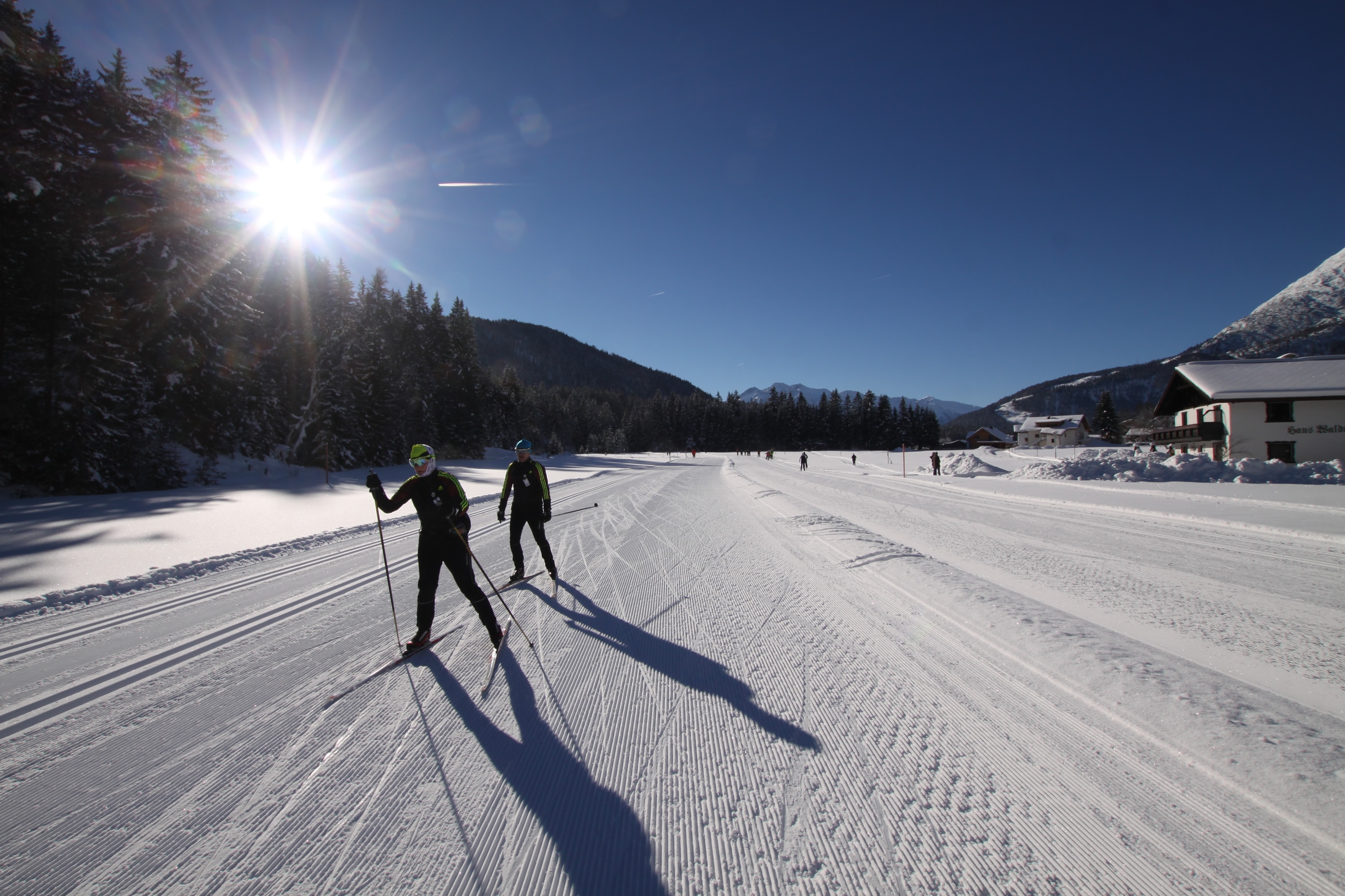 Im Winter punktet das Haus Waldruh mit dem perfekten Loipeneinstieg, welcher sich keine 15 m vor dem Haus befindet. Sie können aus der Haustüre heraus sofort in das 271 km perfekt präparierte Loipennetz einsteigen! Das Loipenticket erhalten Sie in unserer Unterkunft. Um das Langlaufvergnügen perfekt zu machen, gibt es in unserem Haus einen Wachsraum zur idealen Präparierung Ihrer Langlaufskier. Da die Region Seefeld Tirols Hochplateau, vor allem das Leutaschtal, auch tolle Rodelbahnen zu bieten hat, können Sie diese auch schnell über die täglich geräumten Wanderwege erreichen.